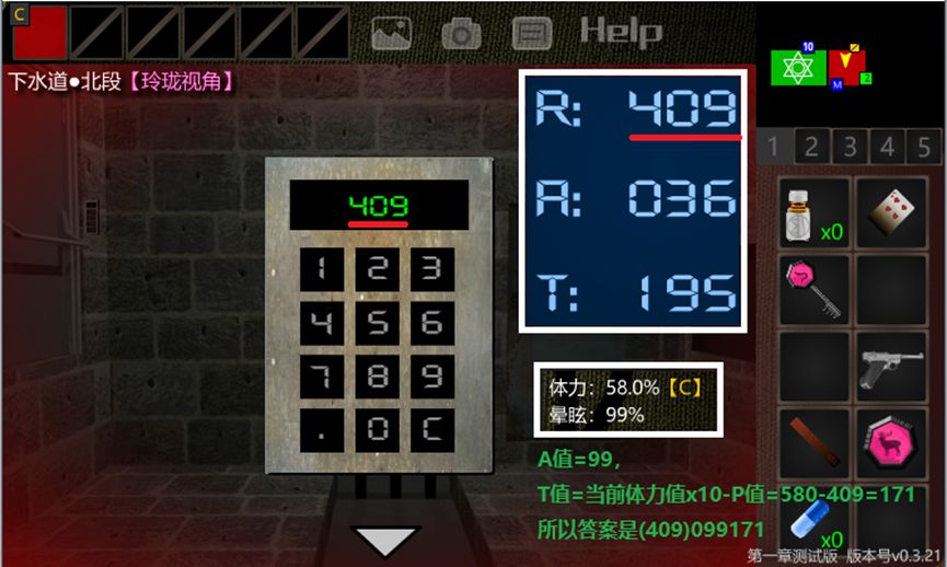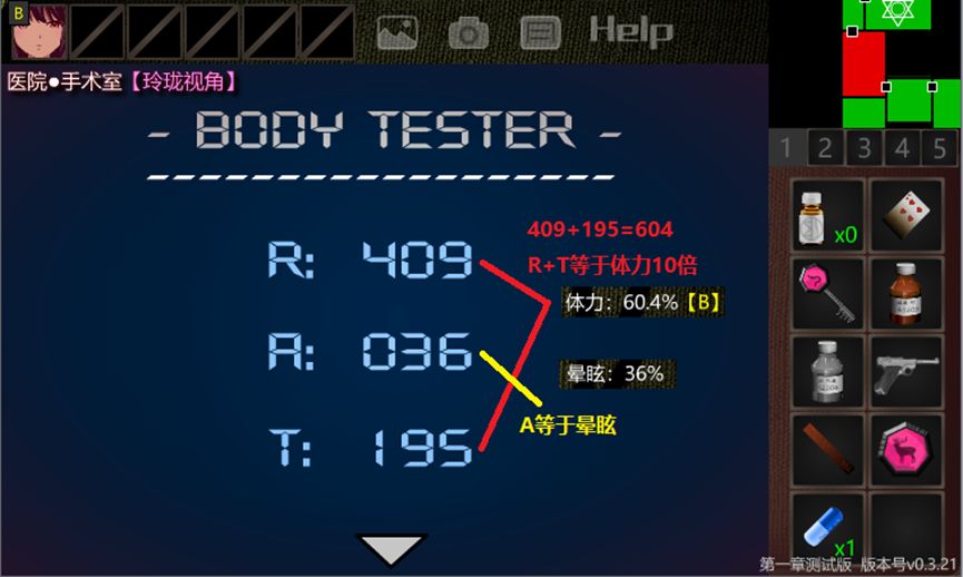 再看恩玲珑数据可以知道,R+T=体力值×10,A=眩晕值。再回到【化工厂·试剂室】。