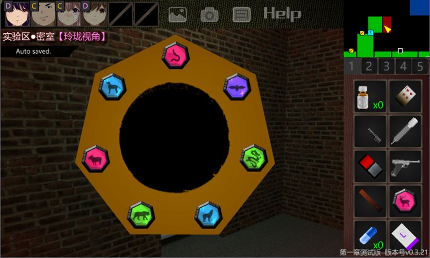 33.把【娄金狗之钥-3】拆开,回收【娄金狗之象征】。此时就有8个徽章了(7个可用),回到【实验区·密室】解青龙盘。而孔上有象形字,顺时针为:水、土、木、木、火、金、金。徽章的象征中间的字就是代表的五行之一。