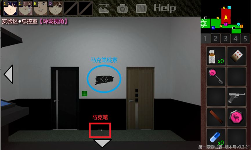 于是可以在【实验区·标本室】,用【马克笔】点击对应场景发现线索“<4”。
