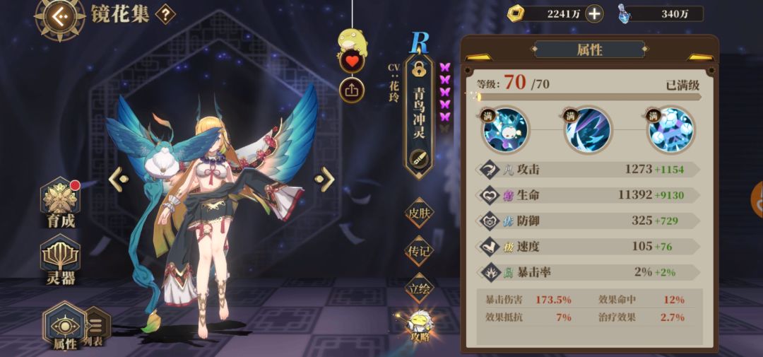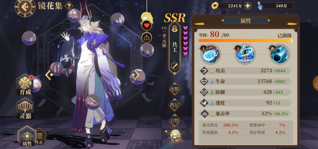 技能:三耀111,宵明153,狗451,共工135,魃454