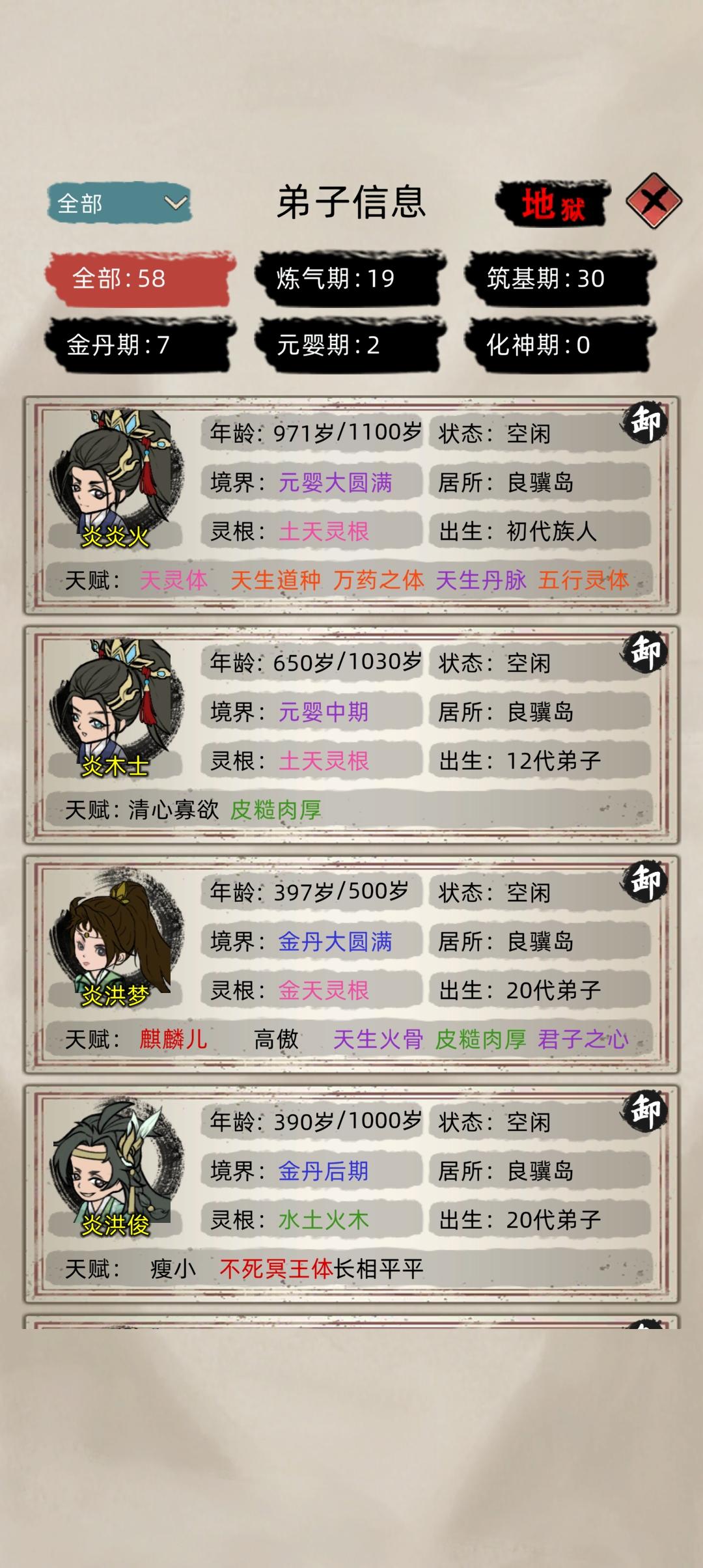 新版本第一次开局,三灵根到了元婴,收割了一些功德重开,第二次开局,玩成这样子。个人感觉,很有挑战性!!模拟修仙,不可能一帆风顺到老死。突破失败,身死道消再正常不过。