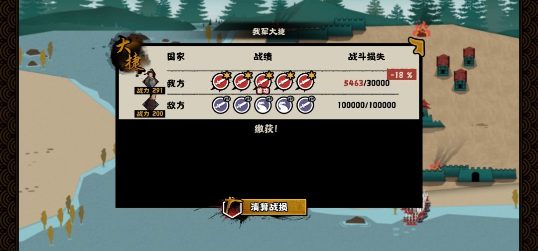 1 下面这局是1星通关,因为探索已经3级了但是我懒得操作,粮多任性,因为有个不用牌加30%攻击力,所以后期没操作过,粮草就是开局刷出来到营地+4,然后还有车兵两个一个2级车+2,一个三级车+3,然后就是敌方0庙算,见到偷窃就买就行。开局用间和探索都得刷。兵种等级两个8最后一波随便升了点。