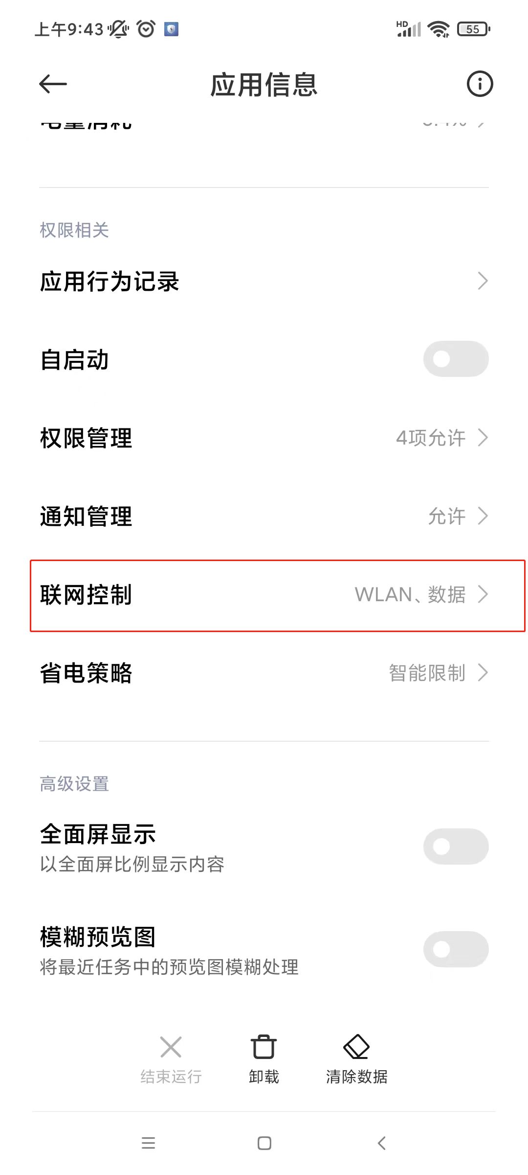 第四步:找到“联网控制”并点击。