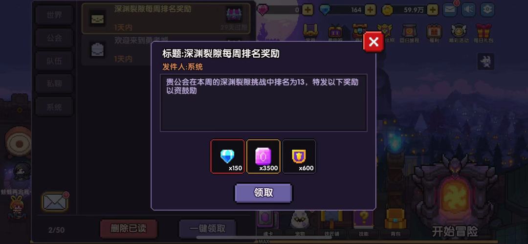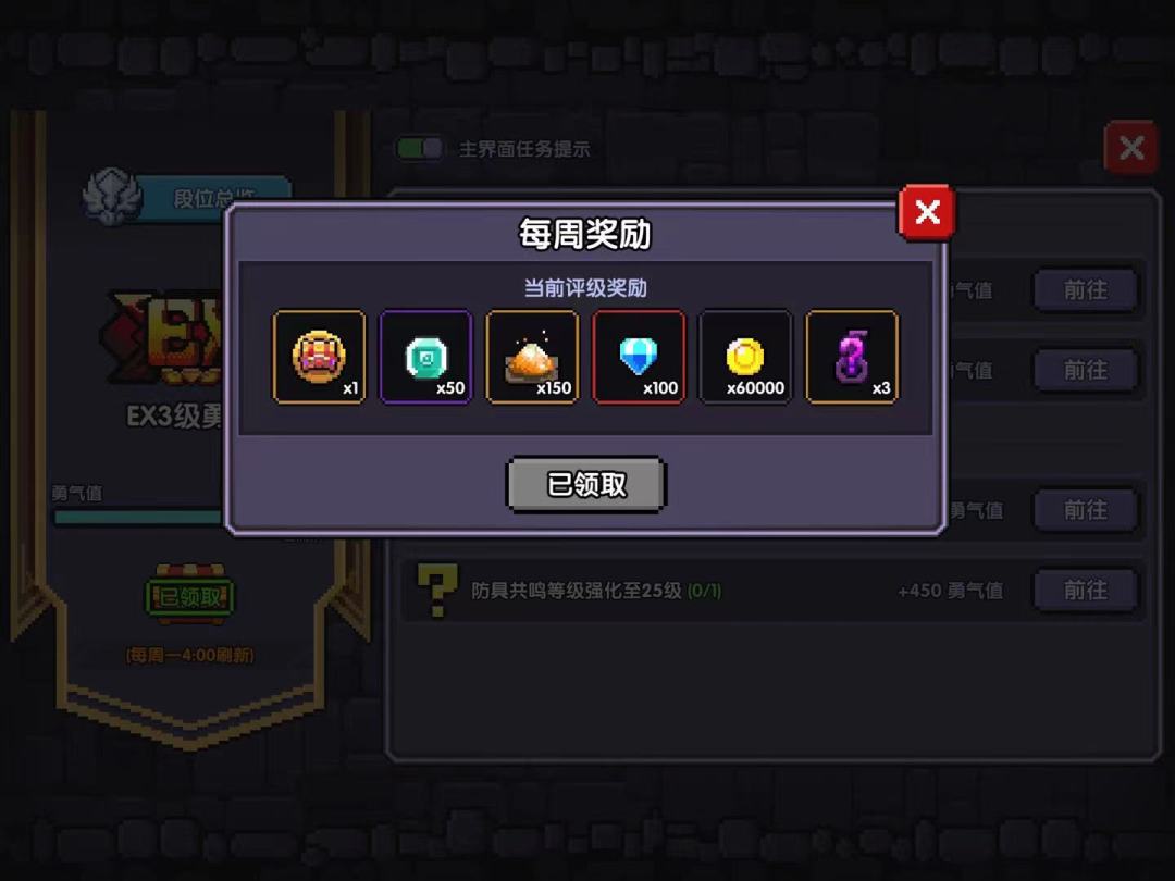 首先,每周第一次上线,就能领取勇者等级的100钻石。每月400