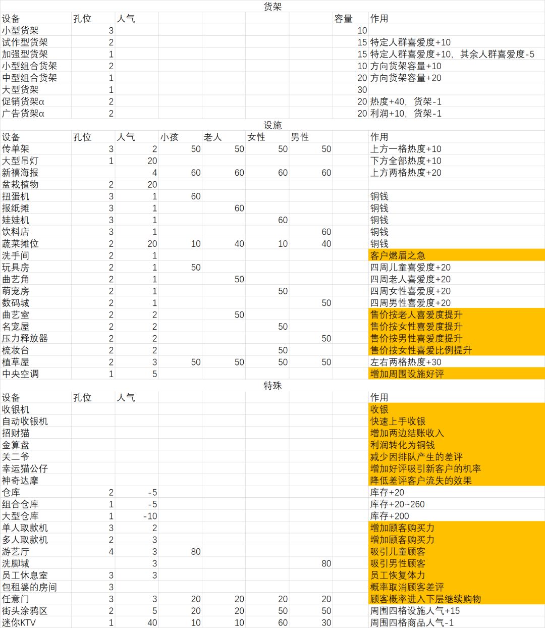 >橙色栏位为效果待验证;
