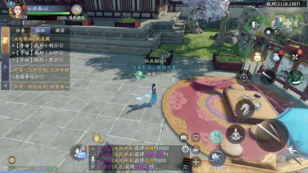 比起第一章存在隐藏任务,需要玩家自己找寻线索,第二章的任务全都是普通任务,直接点击“开始探索”,便可以自动寻路,自动对话。有的时候需要玩家手动找个人,或者跳上房顶,这些都会有明显的提示,照做即可。