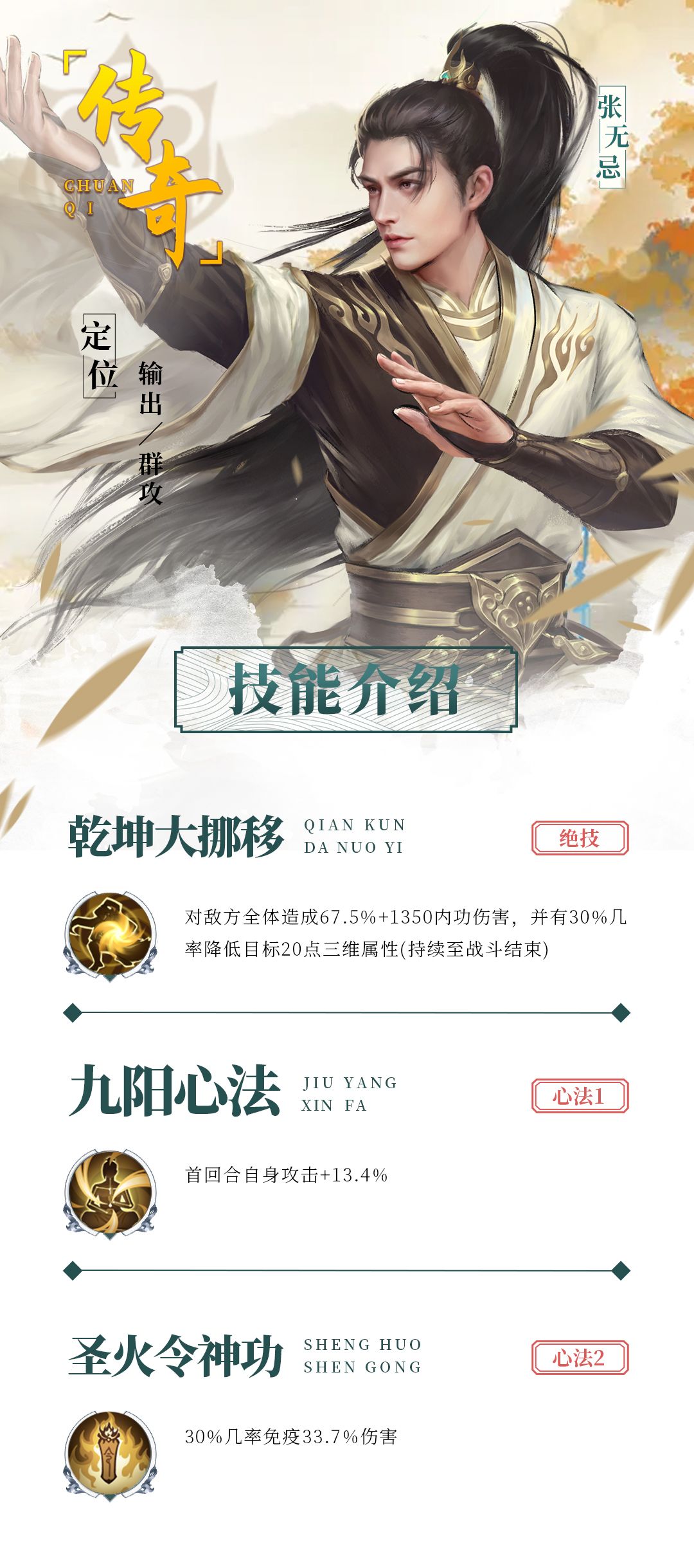 武功:九阳神功、乾坤大挪移、七伤拳、圣火令神功、太极拳剑