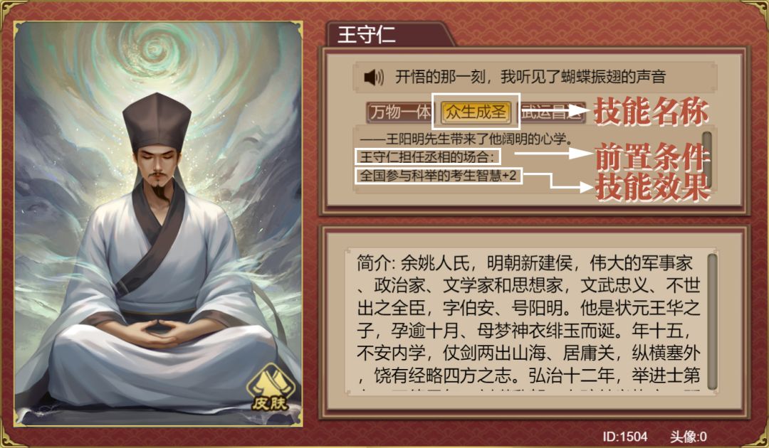 (包含人物名-技能名-前置条件-技能效果等)