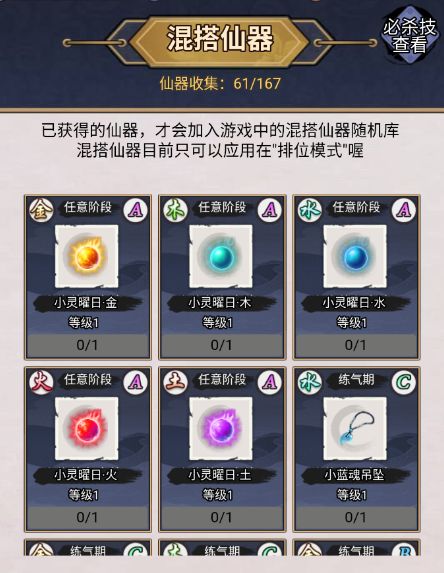 现在在排位赛中,能通过从宝箱中开出的混搭仙器,逆天改命。开局随机到的事件不好怎么办?竞争对手太强怎么办?拥有混搭仙器,这些都不是问题。敌手运气好?暗器伤人,可以直接扣除随机玩家气运;自己杂灵根,没随到好的?仙灵洗塑,重塑肉身,享受主角般的快感......嗯,原来爽文小说主角竟是我自己?