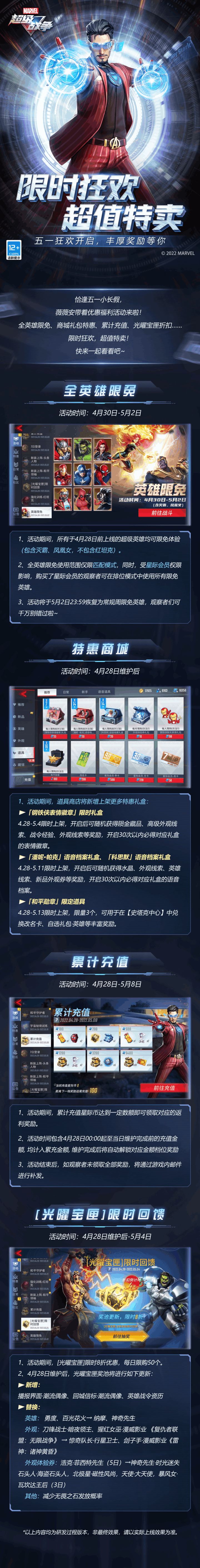 全英雄限免、商城礼包特惠、累计充值、光曜宝匣折扣……