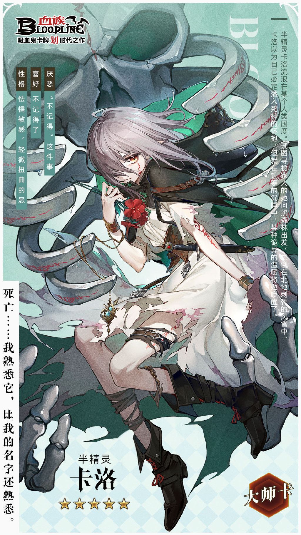 卡洛流浪在某个人类国度,试图寻找家人的她向黑森林出发,却倒在北地刺骨的风雪中。本以为自己必定落入死神的怀抱,但就在饥寒的沉睡中,某种诡异的温暖将她唤醒了。故事未完待续……