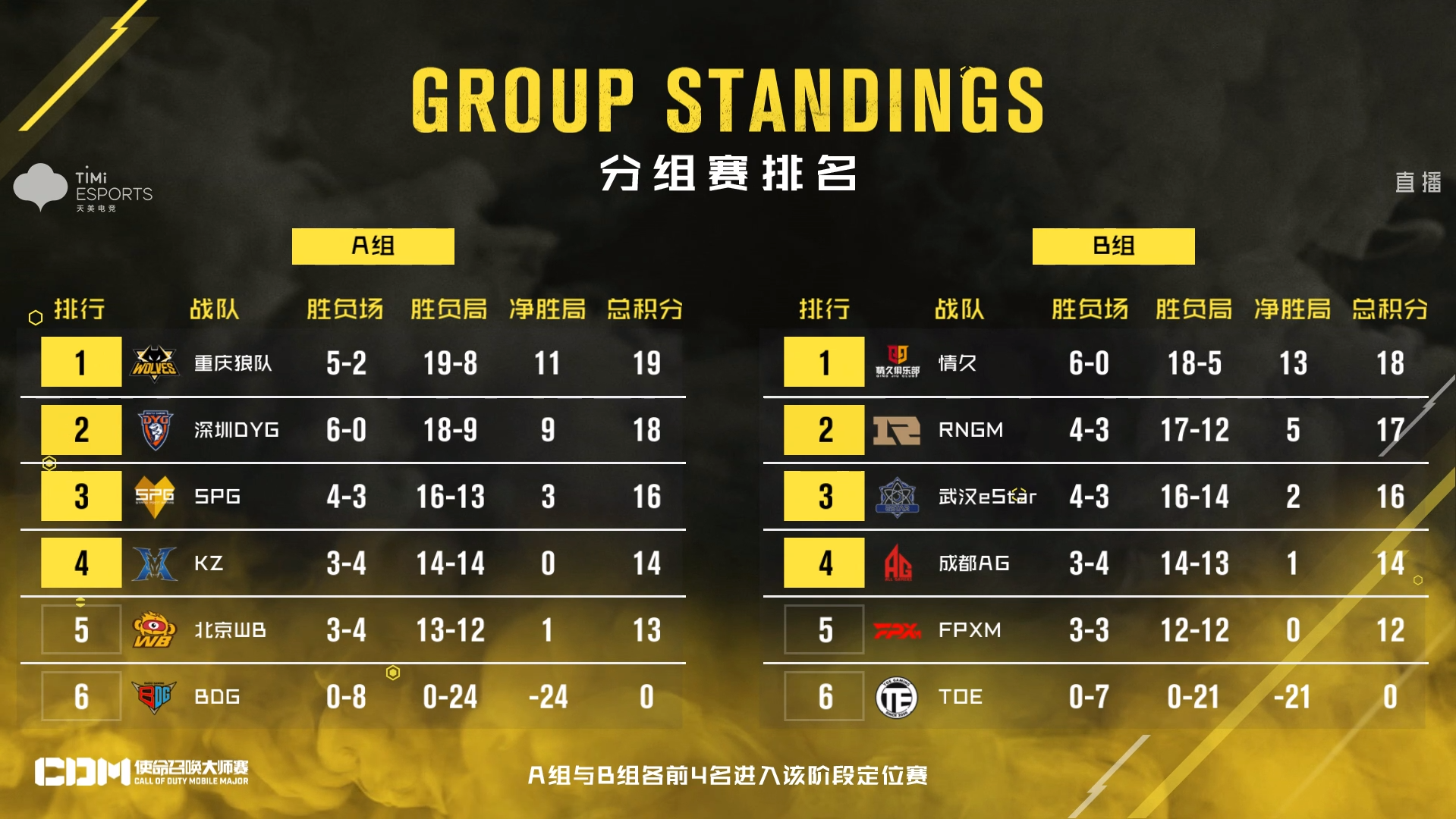 昨日的比赛中,情久在对战FPXM的比赛中,成功拿下第六个连胜,稳居B组榜首,糖酱凭借Kilo 141单人冲点淘汰四人的操作带领队伍拿下胜利;武汉eStar对阵成都AG的比赛中3:2险胜,King在残局的处理帮助队伍拿下很多惊险的局面;RNGM以17的总积分紧随其后位列第二,如果他们能够继续保持,很有希望能够进入定位赛,从而获得季后赛的门票。接下来的比赛还会有哪些精彩的操作呢?战士们一起拭目以待吧~