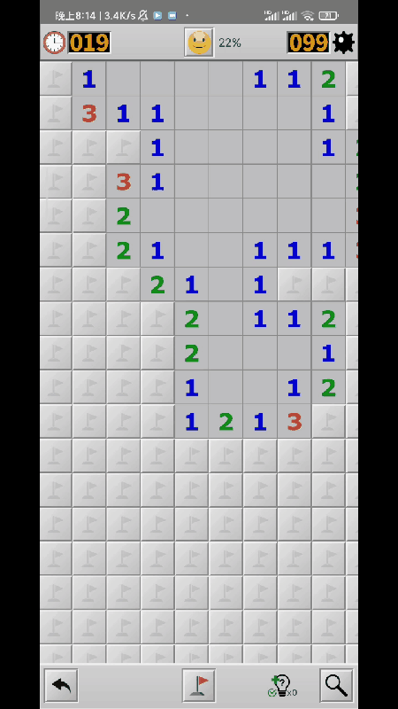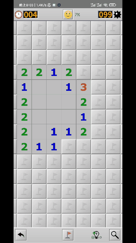 一定要注意!!! 是在我们标记这个数字周围与数字等同的旗帜时,点击数字就会把数字周围未被标记的格子一次性全部打开,这里要注意:如果标记错误,同样也会翻开周围,导致扫雷失败。