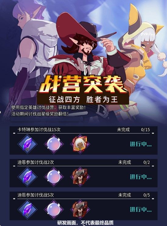 3.讨伐战星级奖励限时变为双倍,包括额外资源、卡包和装备,效果持续时间:6月30日11:00—7月7日9:59。