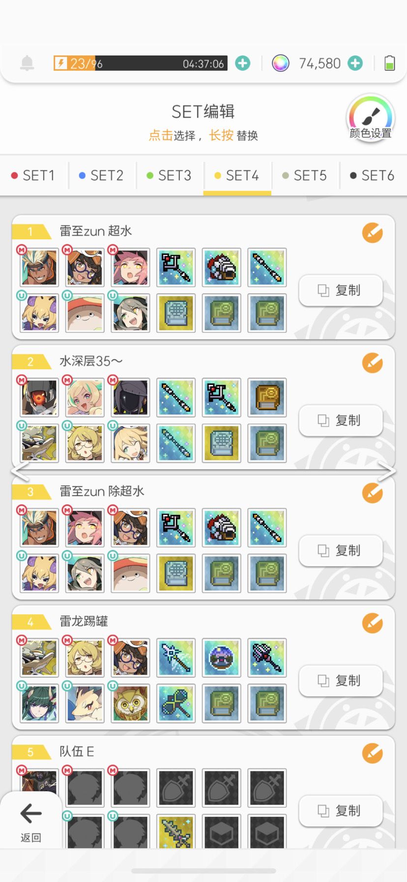 雷属可以放不打超水的雷至尊(编队位多就是好啊!),以及专门深层刷星星的雷fever(水深层35秒左右)