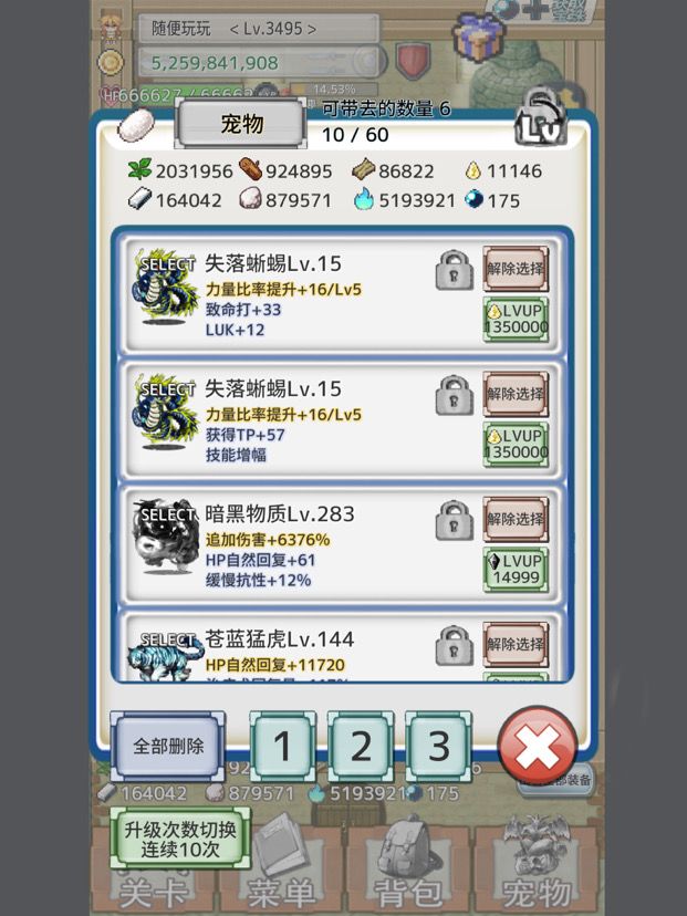 大量的LS优先升满2蜥蜴,剩下喂给暗黑物质,大约可以260+级