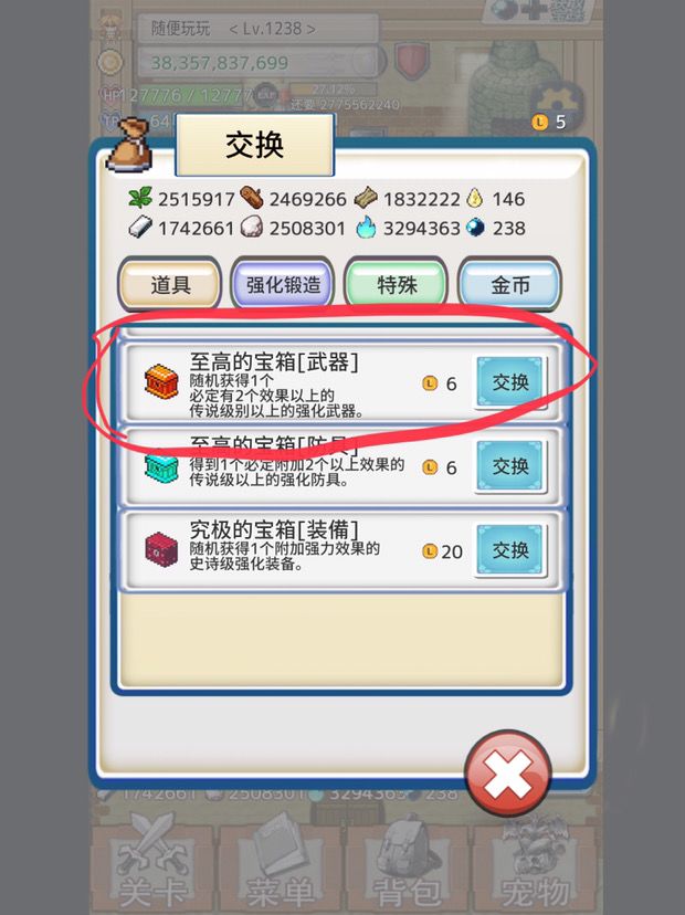 首先你要通过改日期升级素材树到40级(先升级树再收素材会很赚),然后用每日硬币买至高箱子