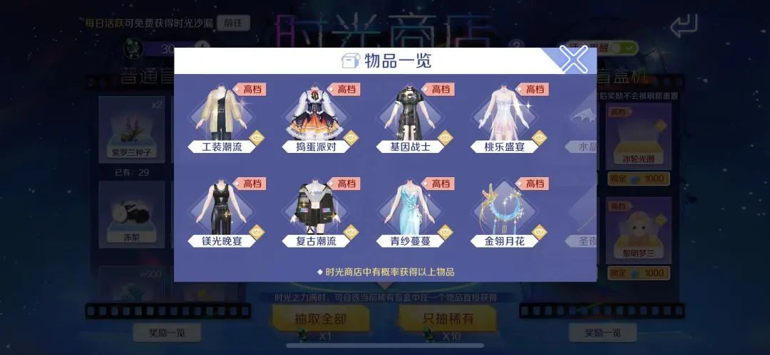 小主人们别忘了时光商店中还有美美的时装等着你们,用时光沙漏去抽取哦!