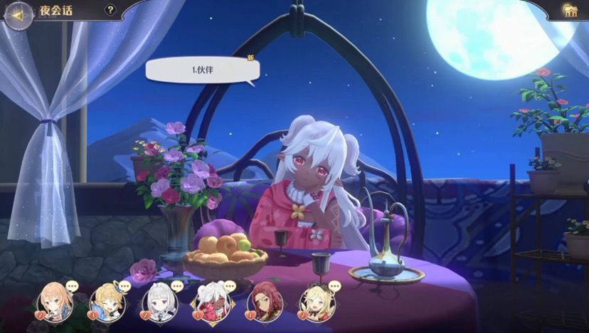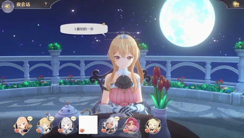 这里是喜闻乐见的的夜会话时刻,我这这个游戏百分之99主要是为了和女孩子在夜会话里卿卿我我,其他的部分都是随便做的