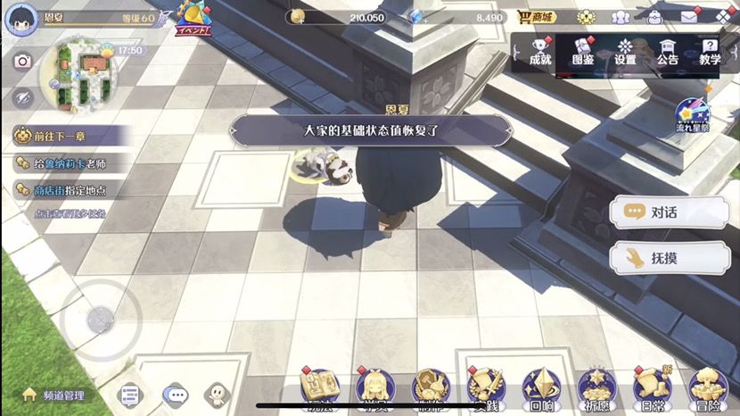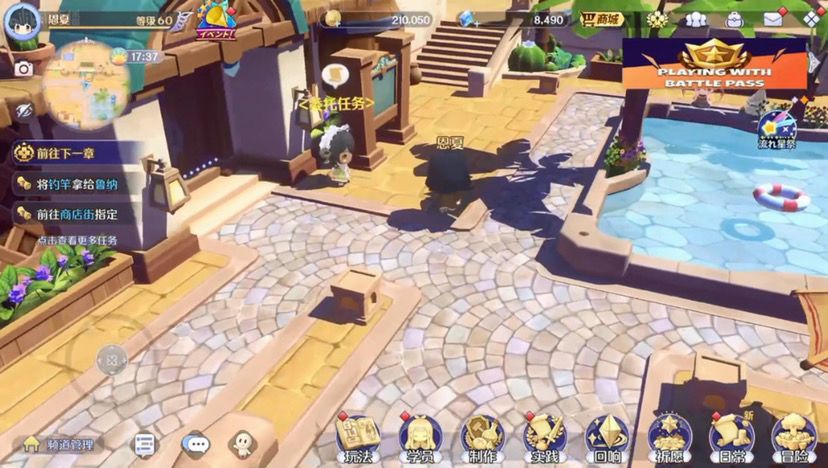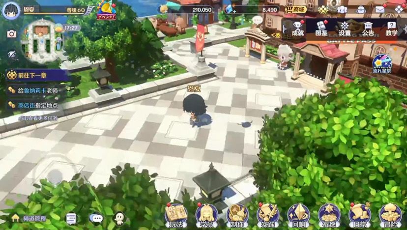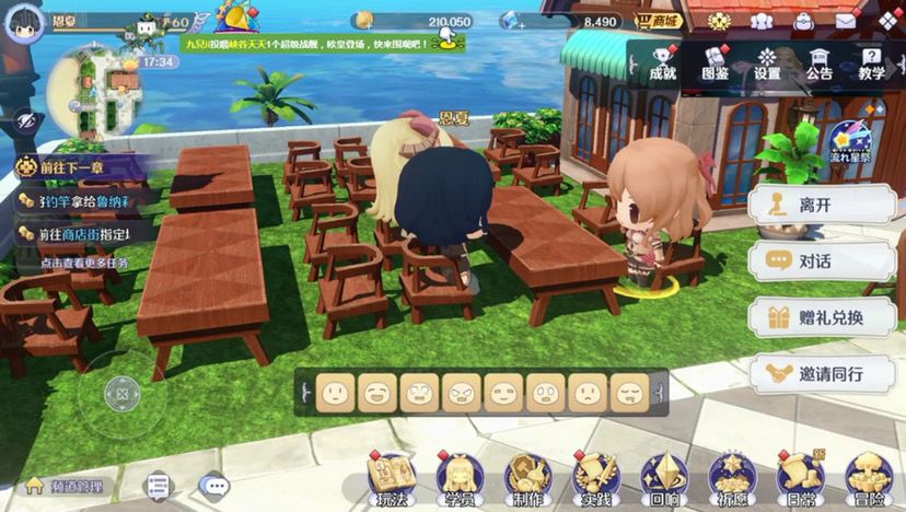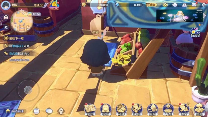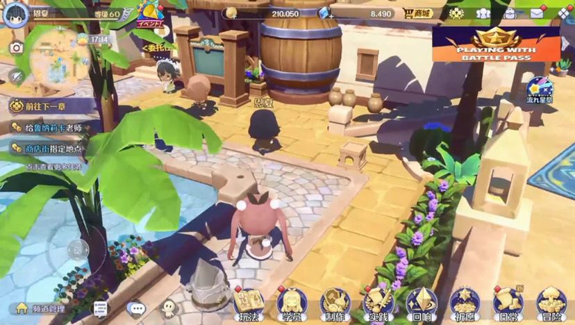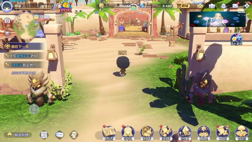 17:如果说老玩家看到这个画面一定会觉得好像是不是有些地方不太对对没错我把角色移动提高了百分之三十,虽然说很多人都说tm的太快了,但是没关系(夏芽:我觉得很好,这很好)对然后在游戏里面,这个是游戏的主城和一般的游戏主城基本上ui位置不一样,我的话我希望给大家带来更学院化的体验,所以说做了这么一个箱庭岛,然后这里是学校的沙滩,沙滩上可以和大家一起多人钓鱼,这个即时的玩法然后也可以在晚上的时候对天上的流星许愿然后许愿之后也许就可以实现你的愿望,然后你可以捡食材