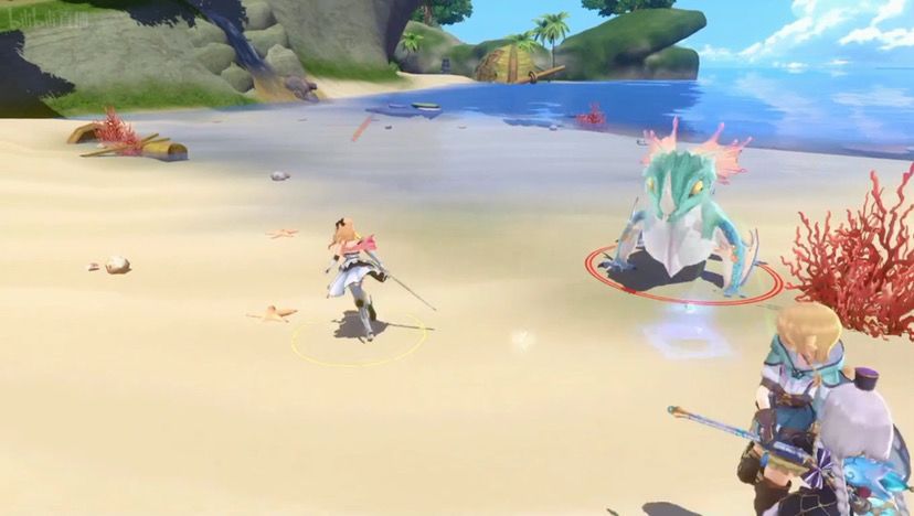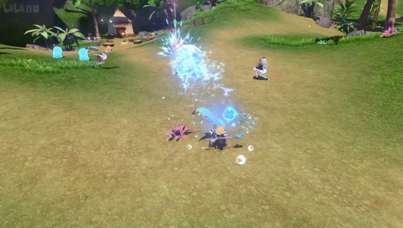 野外冒险就这个样,这个游戏不肝,非常简单,它还是个jrpg,所以还是以rpg为主,战斗部分的话是即时制,在野外你看到怪物的话想大就直接揍,不想打也可以绕过去,他们然后捡的素材就可以回家啦,如果你连素材也不想捡的话可以用自己身上的****【没听清】,然后每天的采集点啊之类的都可以用来兑奖素材,没有男角色不好意思