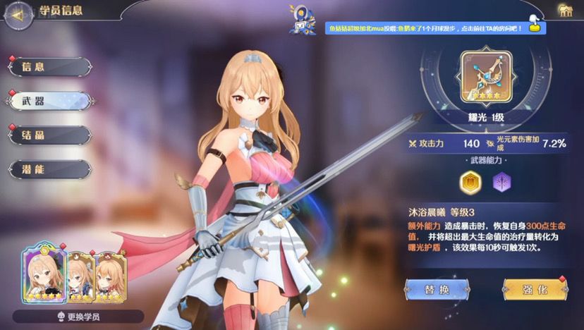 夏芽:这个游戏我们所有角色角色人物是免费获得的就是他原来就会给你的【就是会送普通人物,高级形态要抽】