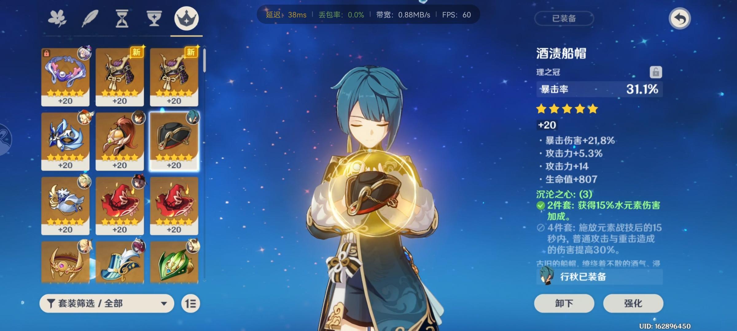 总结一下要想爆伤过四十,基础词条要高还要四词条,一次不歪就能到四十左右。所以圣遗物最好是四词条强化,因为三缺一很容易无中生有防御拉满。😂😂