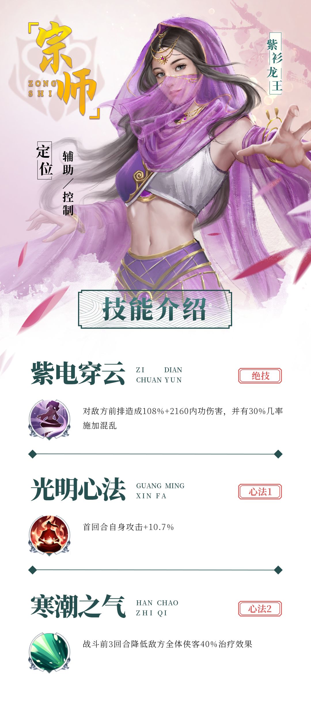 武功:紫电穿云、点穴秘技、寒潮之气