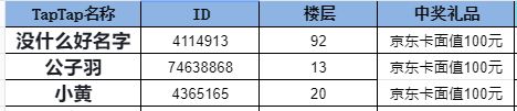 首先是100元京东卡的中奖玩家和抽奖凭证: