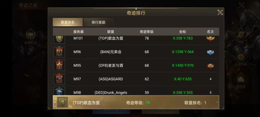 M101-TOP公会依然稳居榜首,成功袭击其他联盟302次,被攻击5次,无失败!