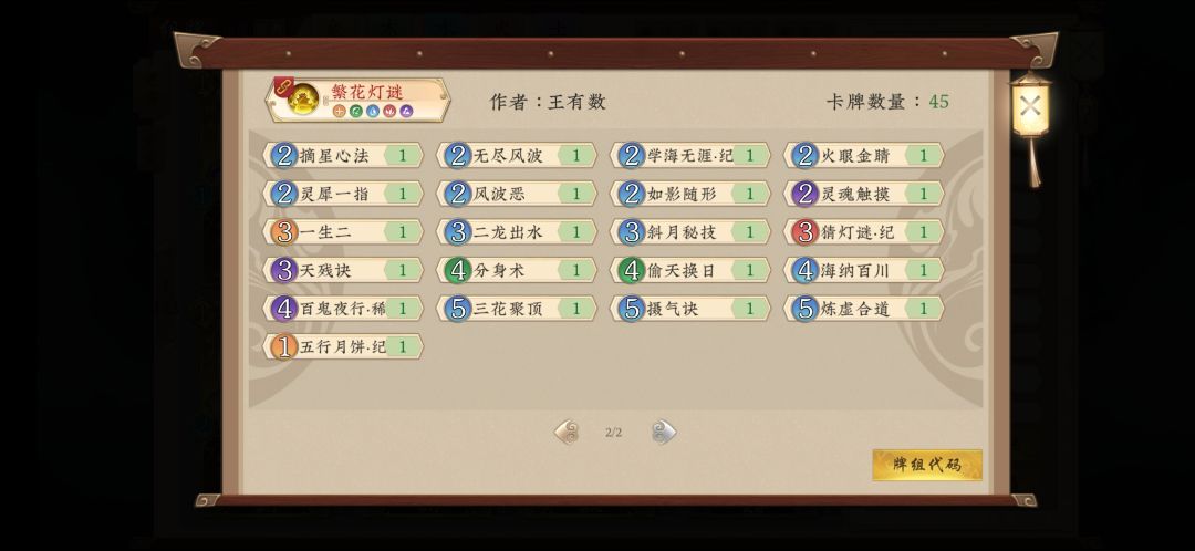 3.这卡组思路很简单,复制、复活、保护玉扇公主,通过玉扇公主复制猜灯谜和繁花似锦,不需要复制太多次以免污染牌库,然后繁花似锦猜灯谜一块用就行了,不过需要注意的是,场上别有太多的纪念卡,会变的很乱。。。原因可以看下面的视频(带个燃木、仙汤应该也挺好玩)