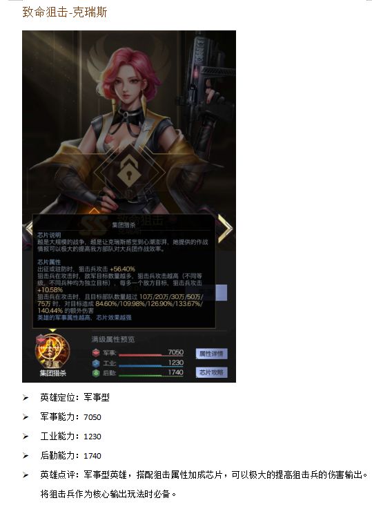 英雄推荐:狙击之王-艾薇儿,致命狙击-克瑞斯能够最大化的发挥出狙击兵的实力,达到千里之外--夺命连环狙击