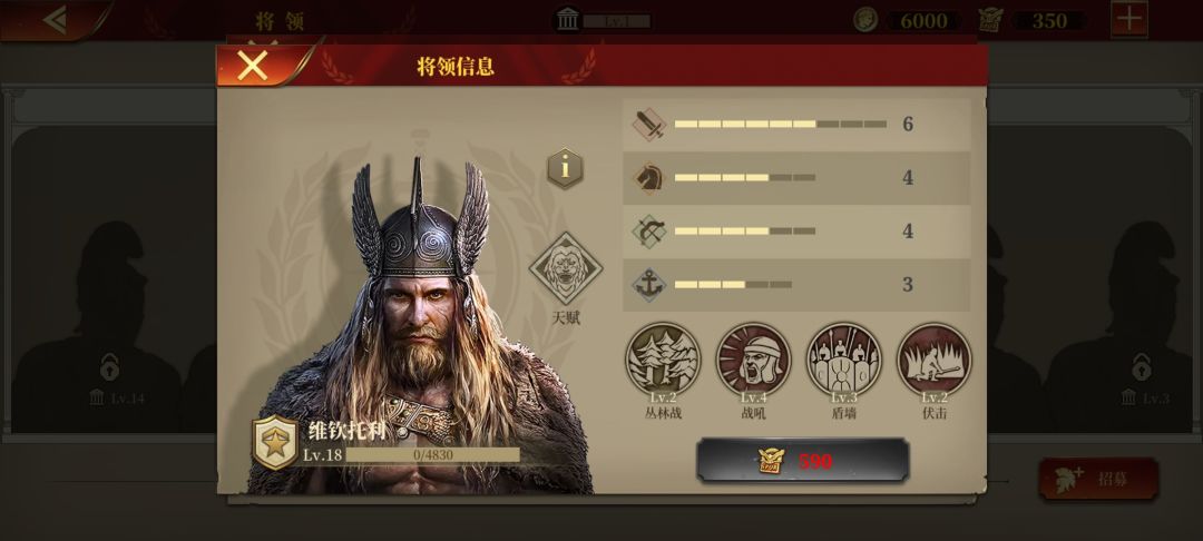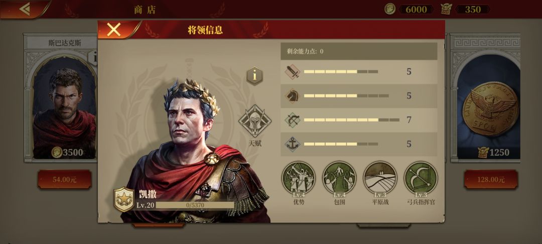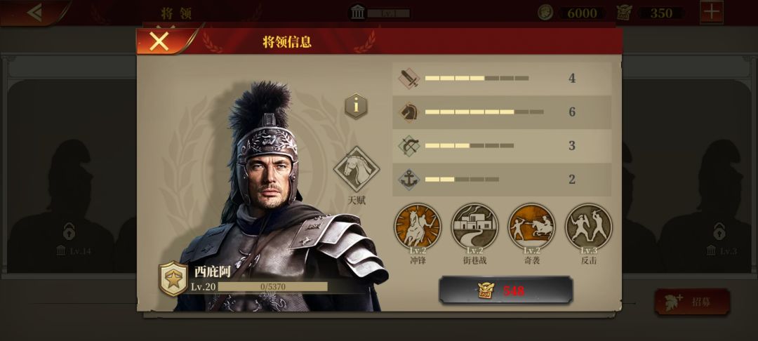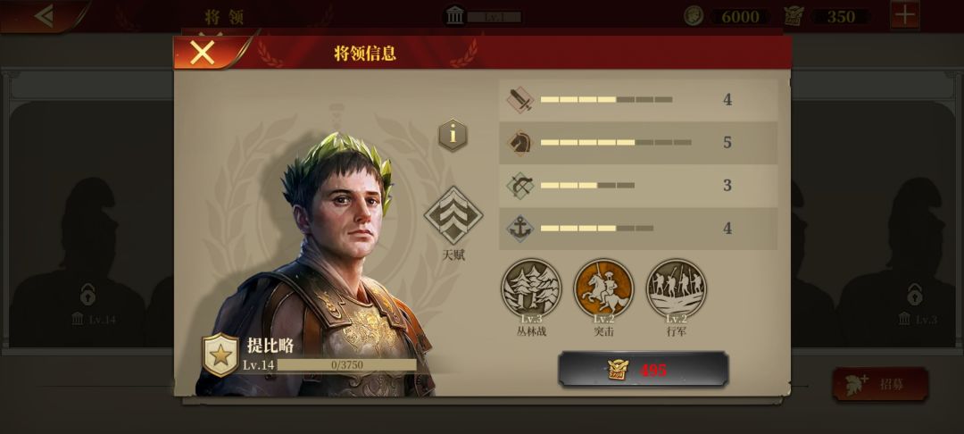 提比略,作为本作唯二的行军骑其中之一,机动性自然没话说,但缺点在于技能搭配不是太好,突击+丛林战带来的伤害增益并没有那么明显,不过提比略自身面板不错,还可以弥补一下,硬伤在天赋,个人感觉这是仅次于防火的鸡肋天赋,最大的作用可能就是给玩家省了15点文化,还有定价问题,跟拉贝巴托问题一样,定价虚高,不建议过早入