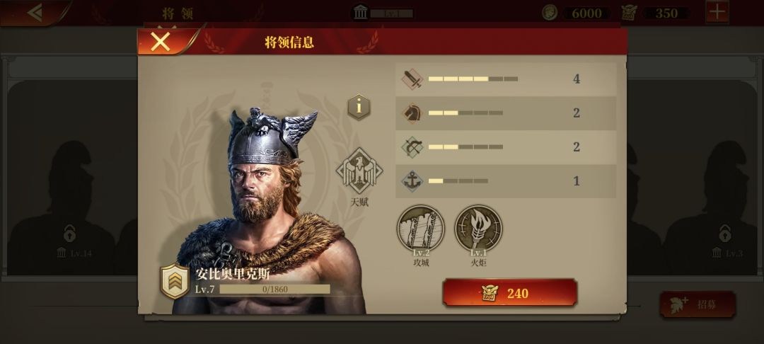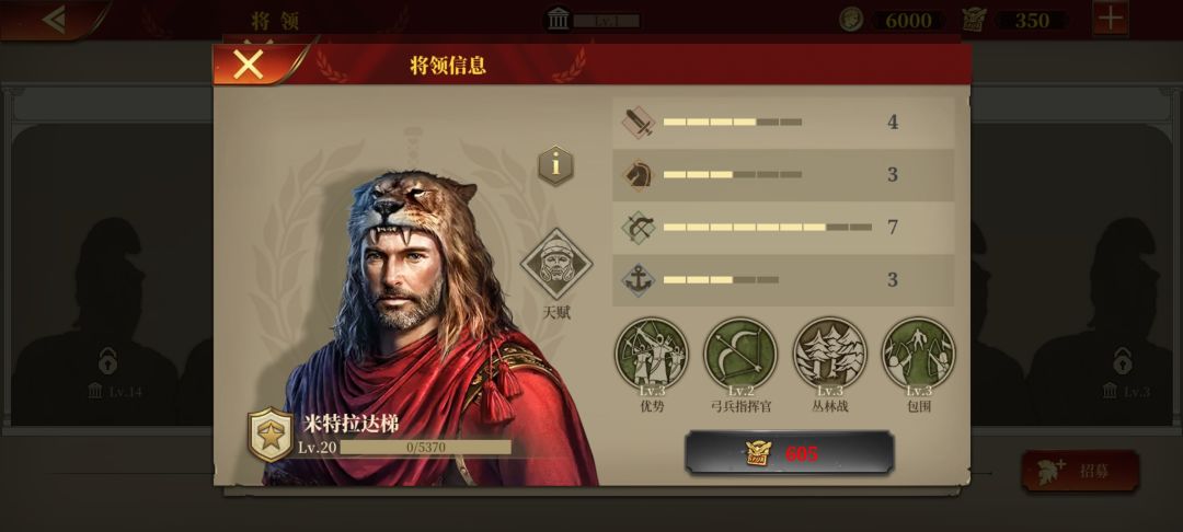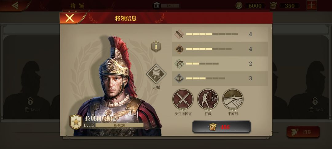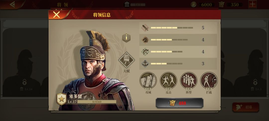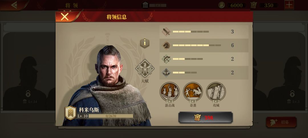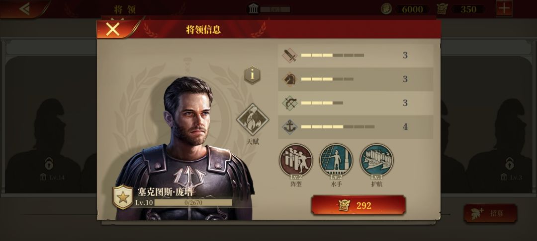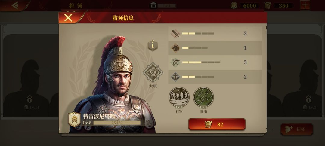 特雷波尼乌斯,老侦查兵了,征罗最便宜的男人,但好用,行军+侦查人见人爱,性价比最高,跟佩蒂乌斯算是各有所长,建议两者之间二选一