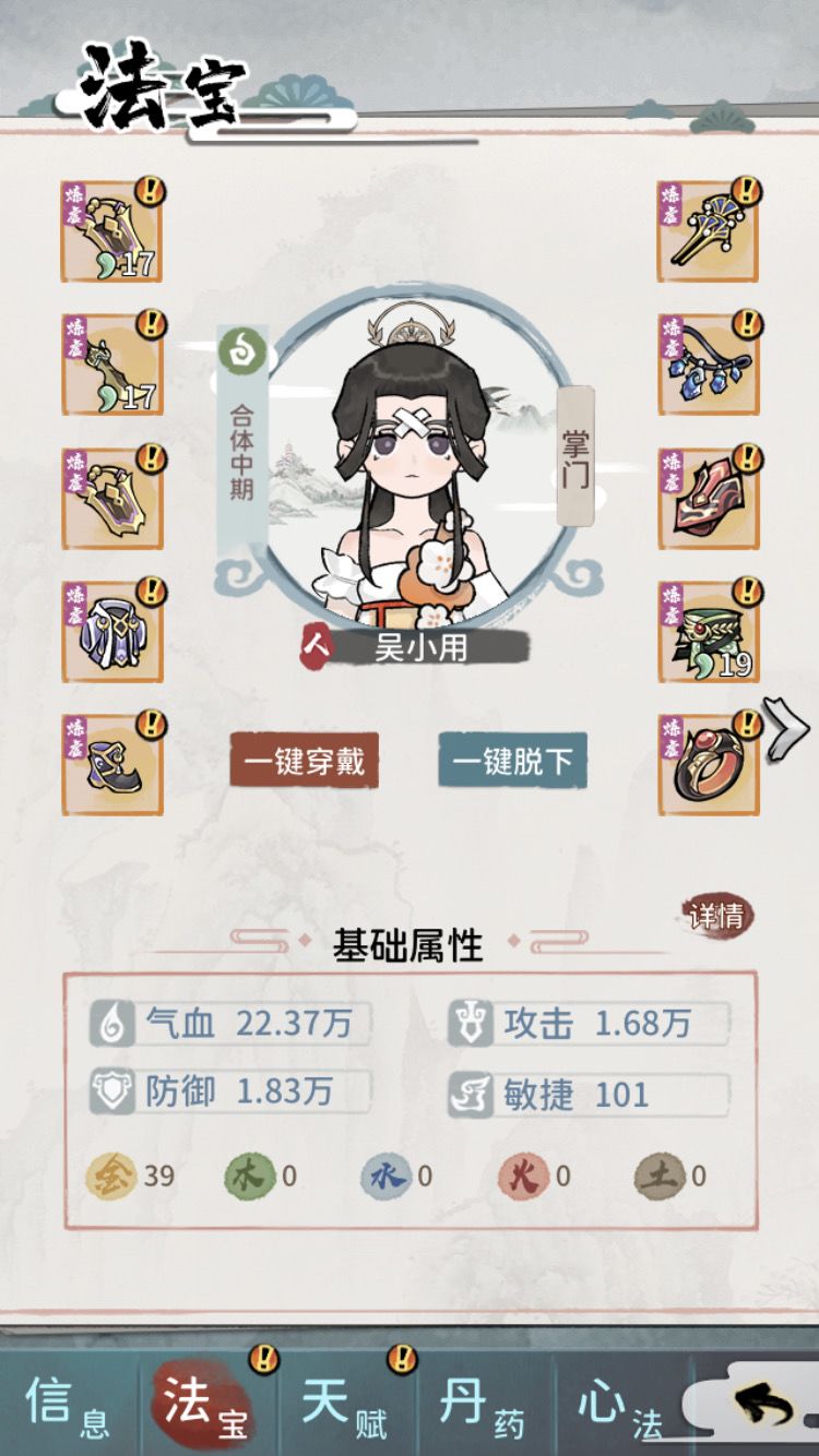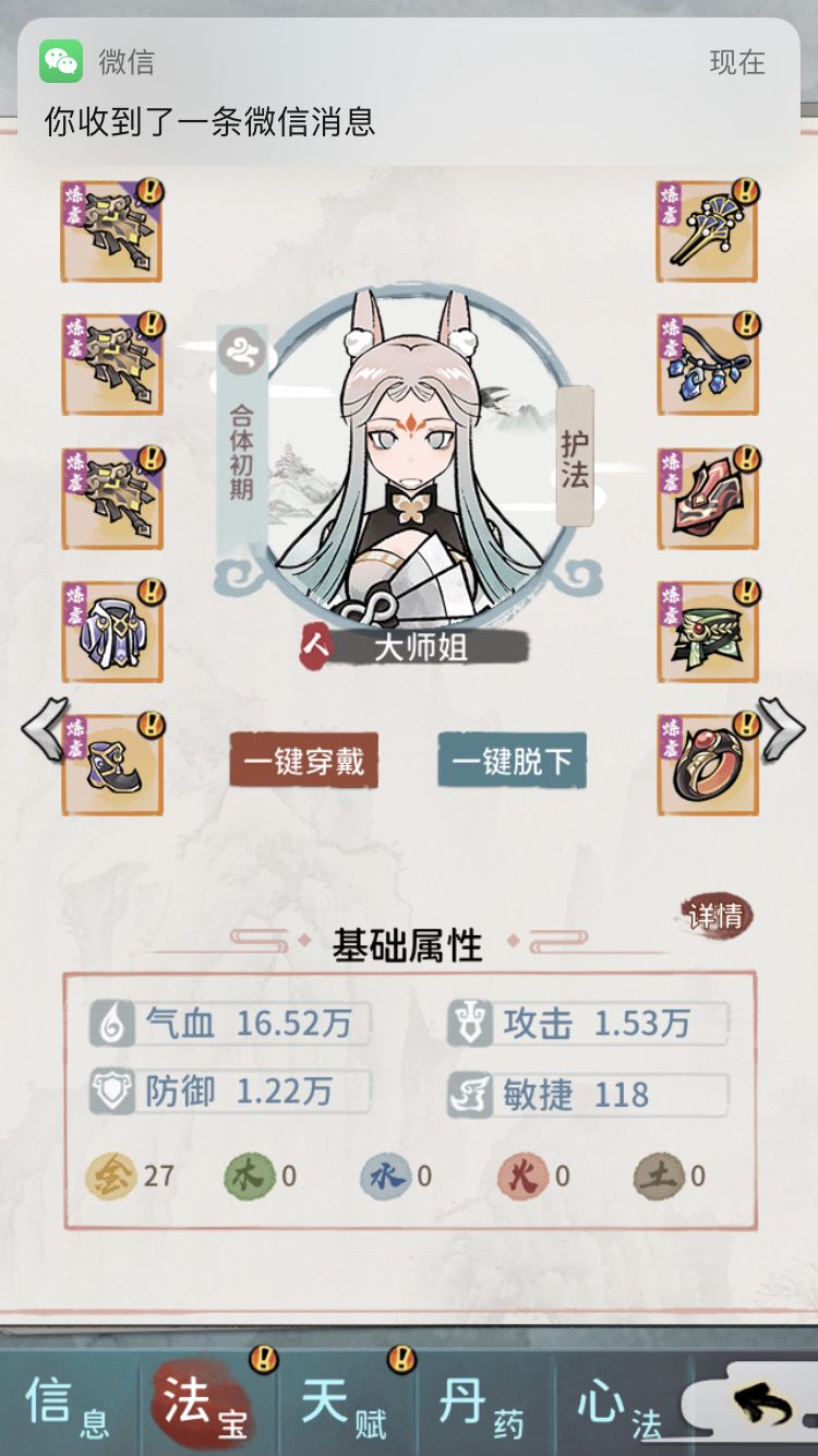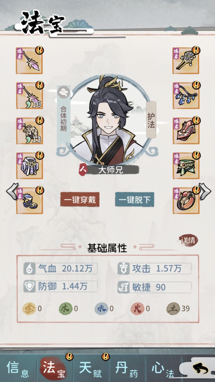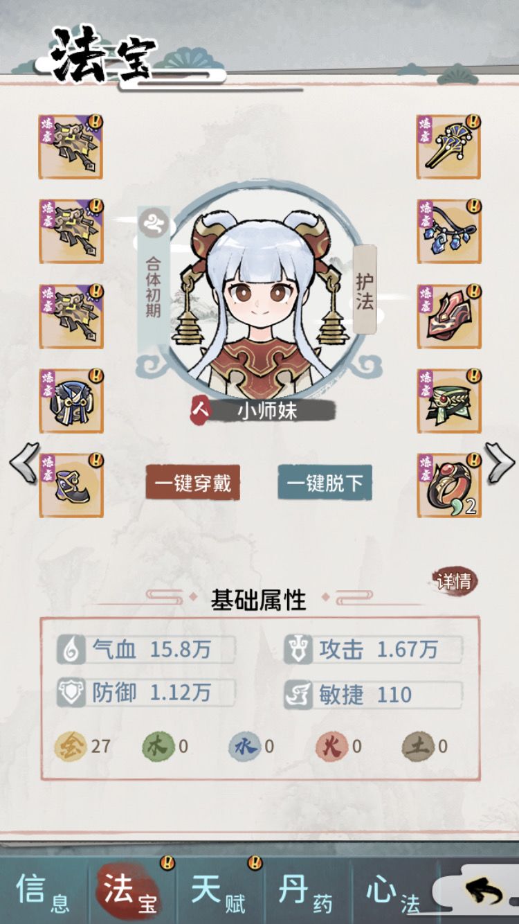 打字太累了,直接上图片吧。6金幡 掌门双金盾金刀 大师兄双土枪土锤 辅助两土印一土锤。五行自己看下图就土枪加了个稀有。金幡打了敏捷石头 其他人都没有。