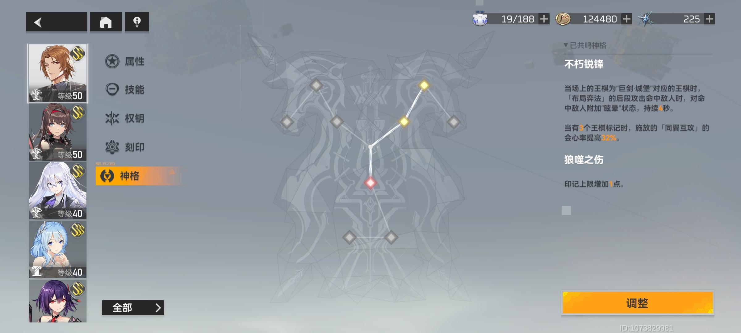 三圣树配队,神格必带一红,加一印记上限给了提尔很大提升输出空间,一红两黄/三色各一,两黄赌3技能会心暴击率,一黄一蓝稳定减敌人光抗和注重城堡的控制效果。