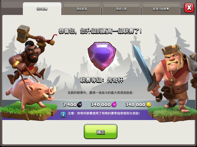 5、12本卡传奇,当12本打到5000杯后,不要报名传奇联赛,而是把护盾取消,下线让别人打你,你就会掉到4999杯以下,这时就可以像泰坦杯段那样搜鱼了,之后只要你把杯控制在4900-4999之间,你照样可以享受传奇双34W、2400黑的奖励,并且你的杯盾也是传奇杯盾。