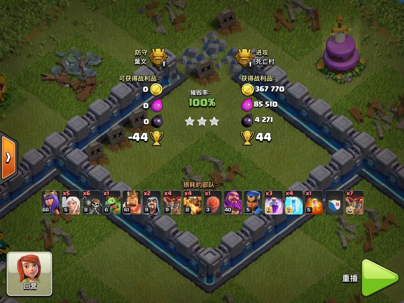 等再进去时,好家伙,被一个13本打了-44杯,掉回到4934杯,此时12点38分,距离赛季结束还有22分钟,离传奇还差66杯,并且很难搜鱼,很难搜高杯,也很难打13本三星。