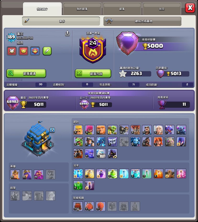 由于大号14本全满了,小号12本差80块墙,这赛季就没怎么玩,基本也就打打部落战,捐捐兵,然后就是躺平等更新了。