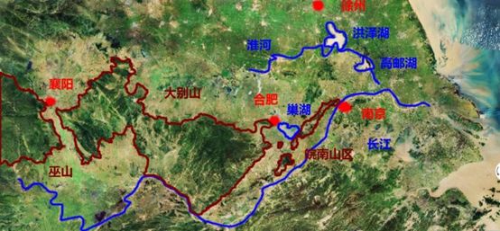 奉辞伐罪和动以朝廷为辞是个名份问题,这里不谈。最早看赤壁的时候,只以为曹操嚣张,孙权动摇的原因是兵力差距,但实际上,刘琮束手,共有长江这两句话,是写在八十万众、势力众寡前面的。对于孙刘两家来说,曹操自夸的“八十万众”还在其次,刘琮投降,荆州门户大开,才是要了亲命。江东和中原相连的门户,共有两个,一个由两个大要塞:徐州-合肥连成的江淮流域组成。