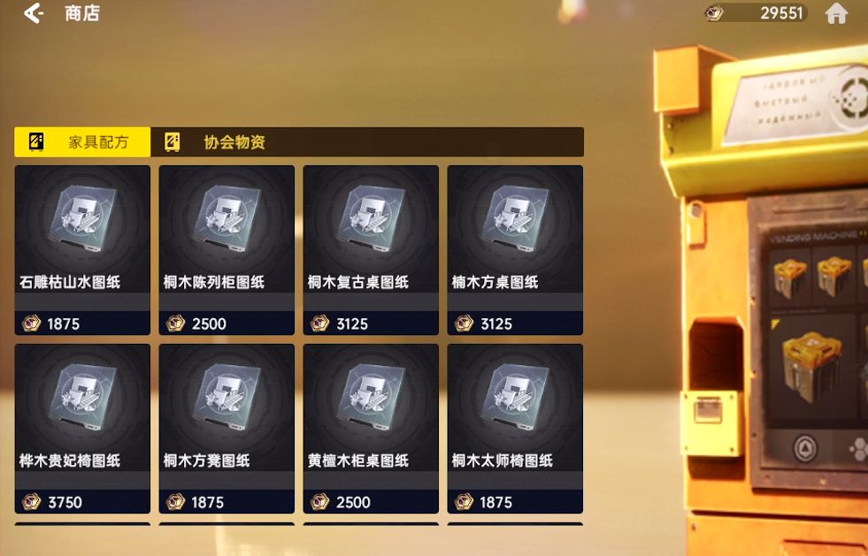 用途:用于购买【家具配方(图纸)】和基【础材料物资】