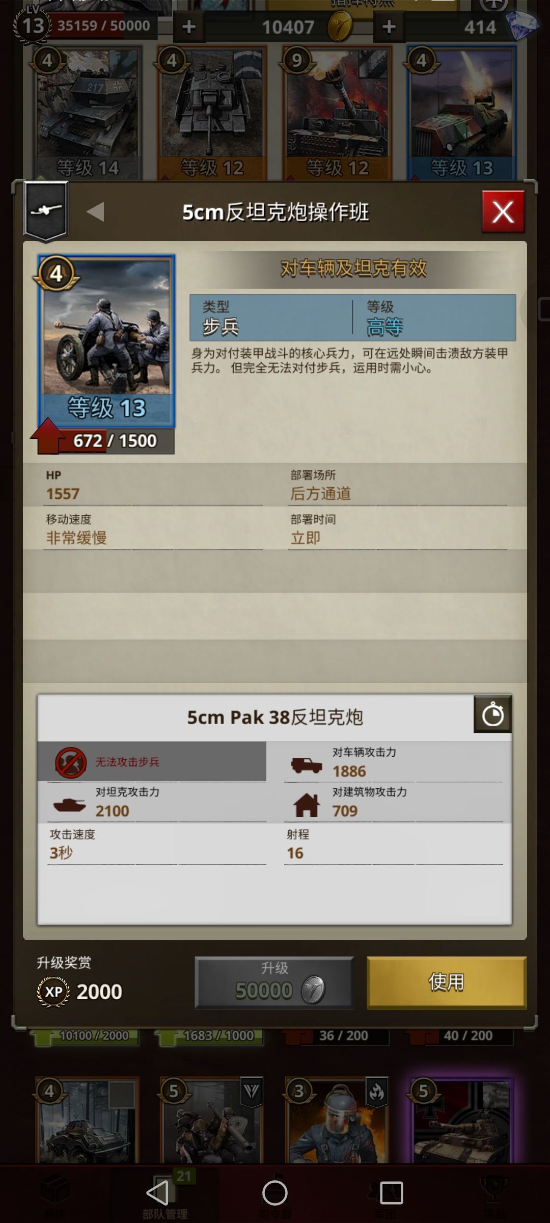 德国步兵流核心,在有专属被动之后可以达到可怕的射程范围。可在远距离瞬间摧毁敌军装甲,其实应该是有被动的就是隐身到达指定地区暂停不动,可以获得隐身效果。下一次攻击伤害提高20%破除隐身之后开始移动。非常像特种近卫部队的渗透,不过这个效果在东线变成伪装反坦克炮阵地,但其实两个是同一个兵种。只不过一个是阵地。好言归正传,步兵阵容核心,不带这张牌打不过对面装甲流,心疼东线没有什么给远距离对敌方造成致命打击的反坦克步兵,要不是火箭炮持续,要么就是直接秒杀。卡牌定位可以看我那边的美军反坦克炮操作班,是一样的定位,都是阵容核心需要保护,前面已经说过相同的,就不再接着介绍了。