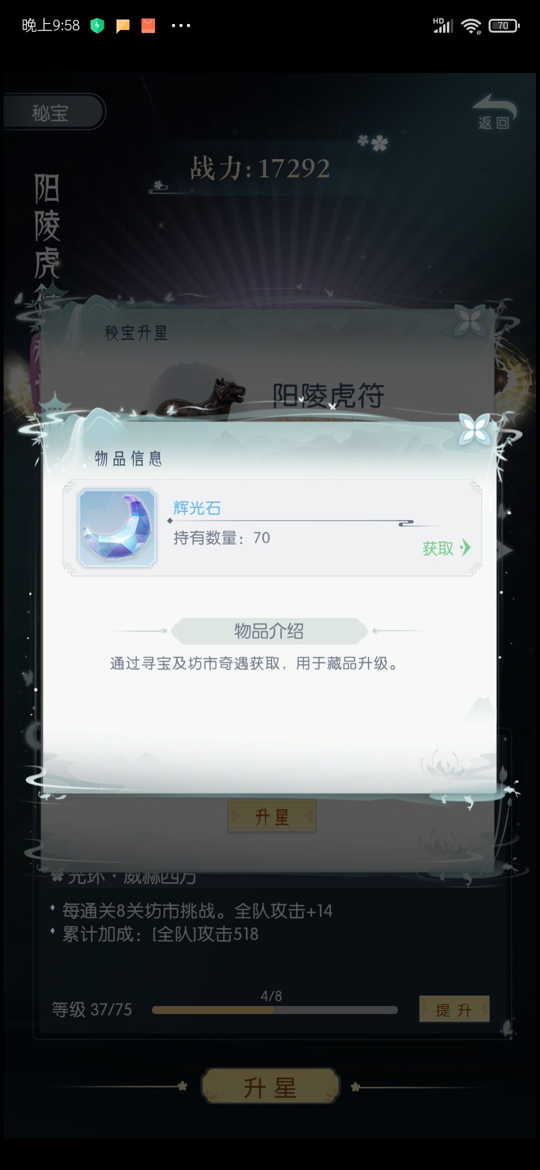 所有藏品升星都需要,辉光石。