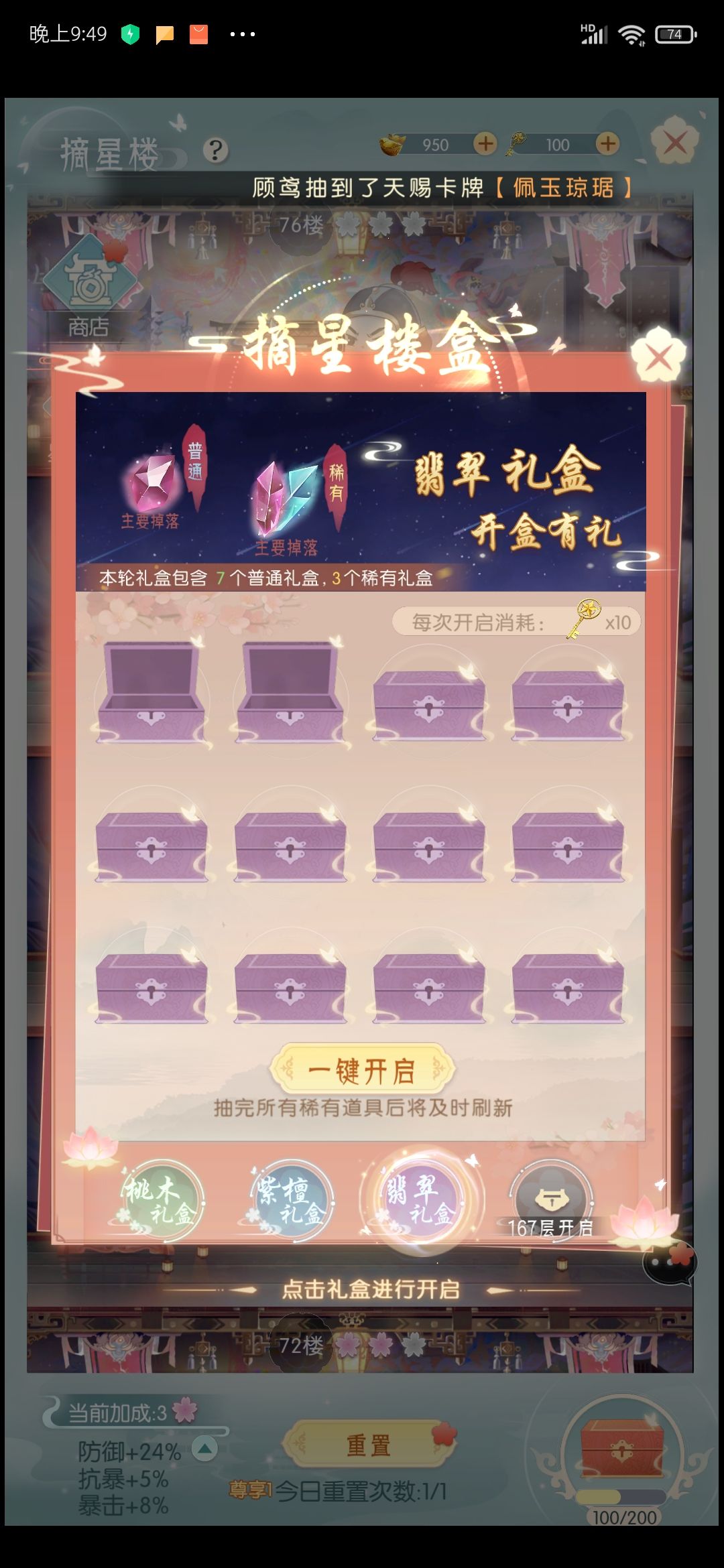 翡翠礼盒(紫)开启掉落:星辰结晶,星辰原石。