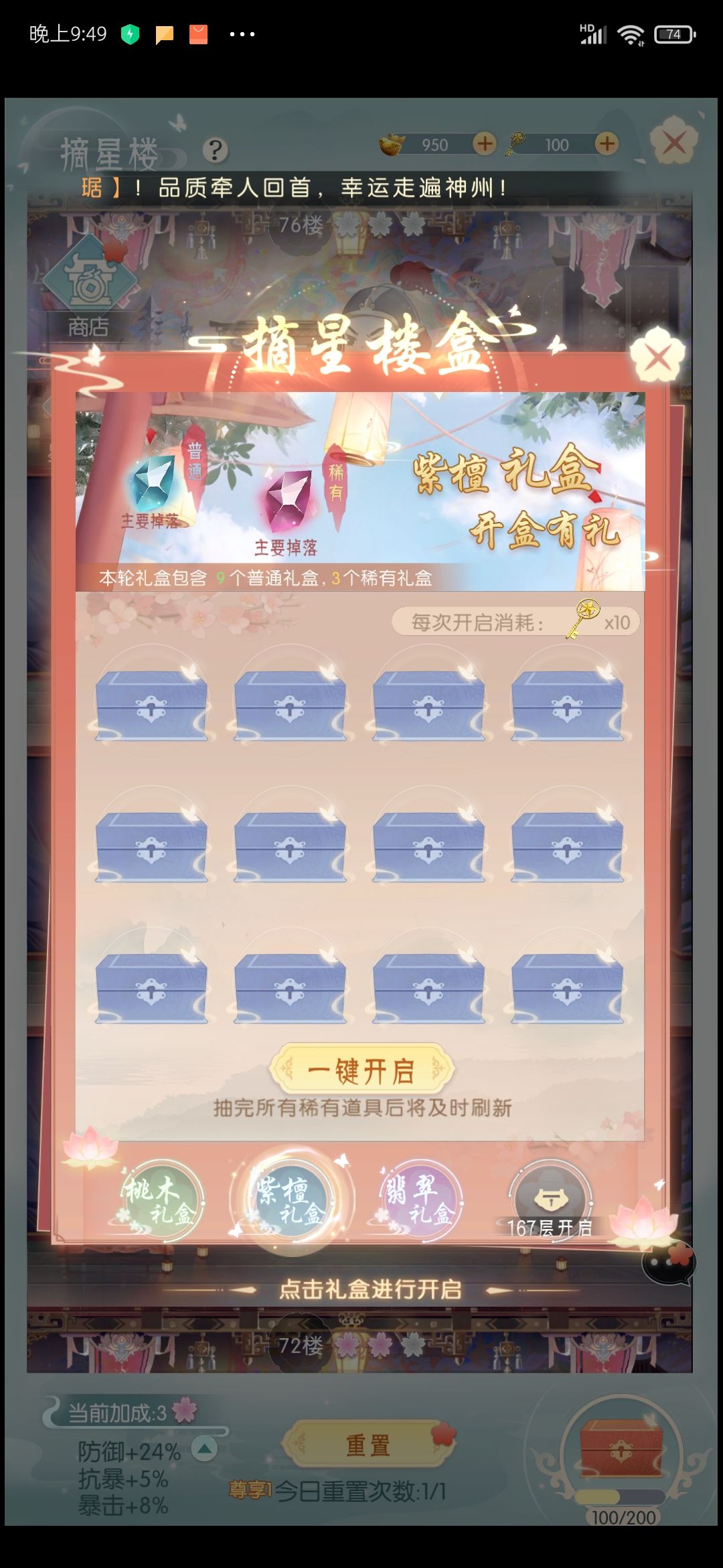 (开启礼盒需要钥匙,钥匙也是打层,重置,获取)