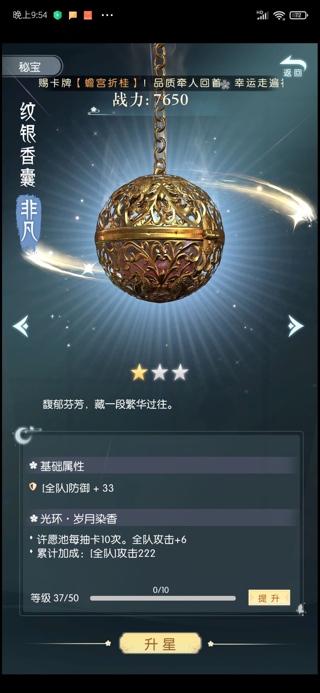 秘宝,有基础属性,和光环。