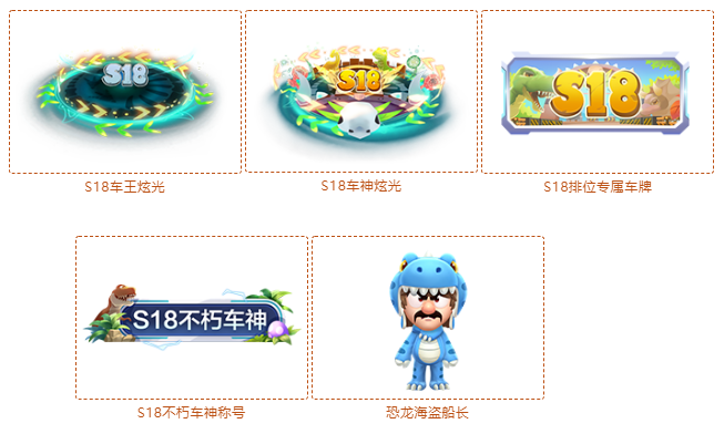参与排位即可获得排位币,使用排位币即可在排位商城兑换包含侏罗纪绿色车贴、侏罗纪红色车贴、侏罗纪棕色车贴、恐龙遗骸在内的超多好礼,更可以解锁终极奖励——车手:恐龙海盗船长!话不多说,直接进入宝宝的专属show time!
