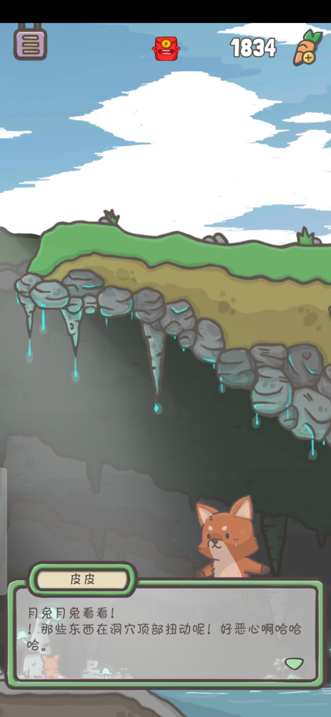 终于开启新场景了,发现兔兔吃了发光蘑菇就变得晕晕乎乎,shasha的