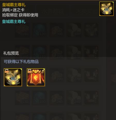 其中包含了台牌饰—九五至尊(7天)*1和皇城霸主(称号)(7天)*1。