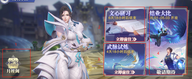 此次的月明华照活动说白了就包含了四个部分,分别是月桂阁、文心研习、武脉试炼和结业大比,接着我们就一个一个来说。